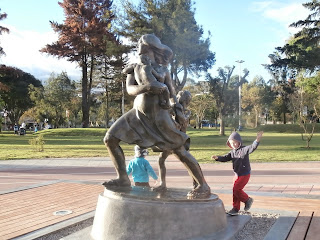 Après un copieux almuerzo (menu du midi traditionnel composé d'une soupe, d'une viande ou d'un poisson avec du riz et d'une boisson pour environ 3 dollars), nous prenons notre premier bus, direction Quito. On arrive tant bien que mal à nous glisser sur deux places avec les enfants et les nombreux bagages à main. Le lendemain, nous visitons l'un des nombreux parcs de la capitale: La Carolina. On profite des jeux et du beau petit jardin botanique.